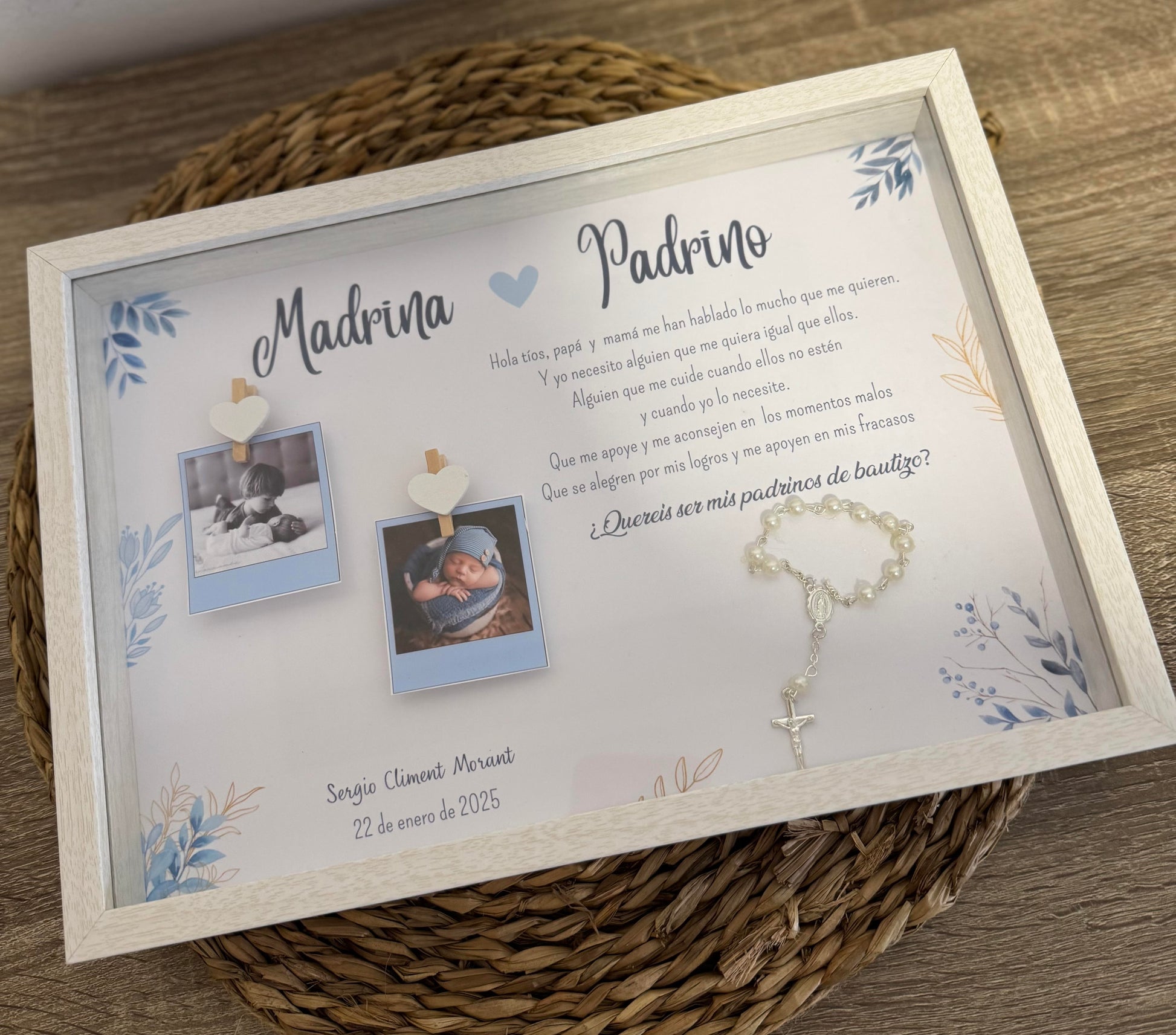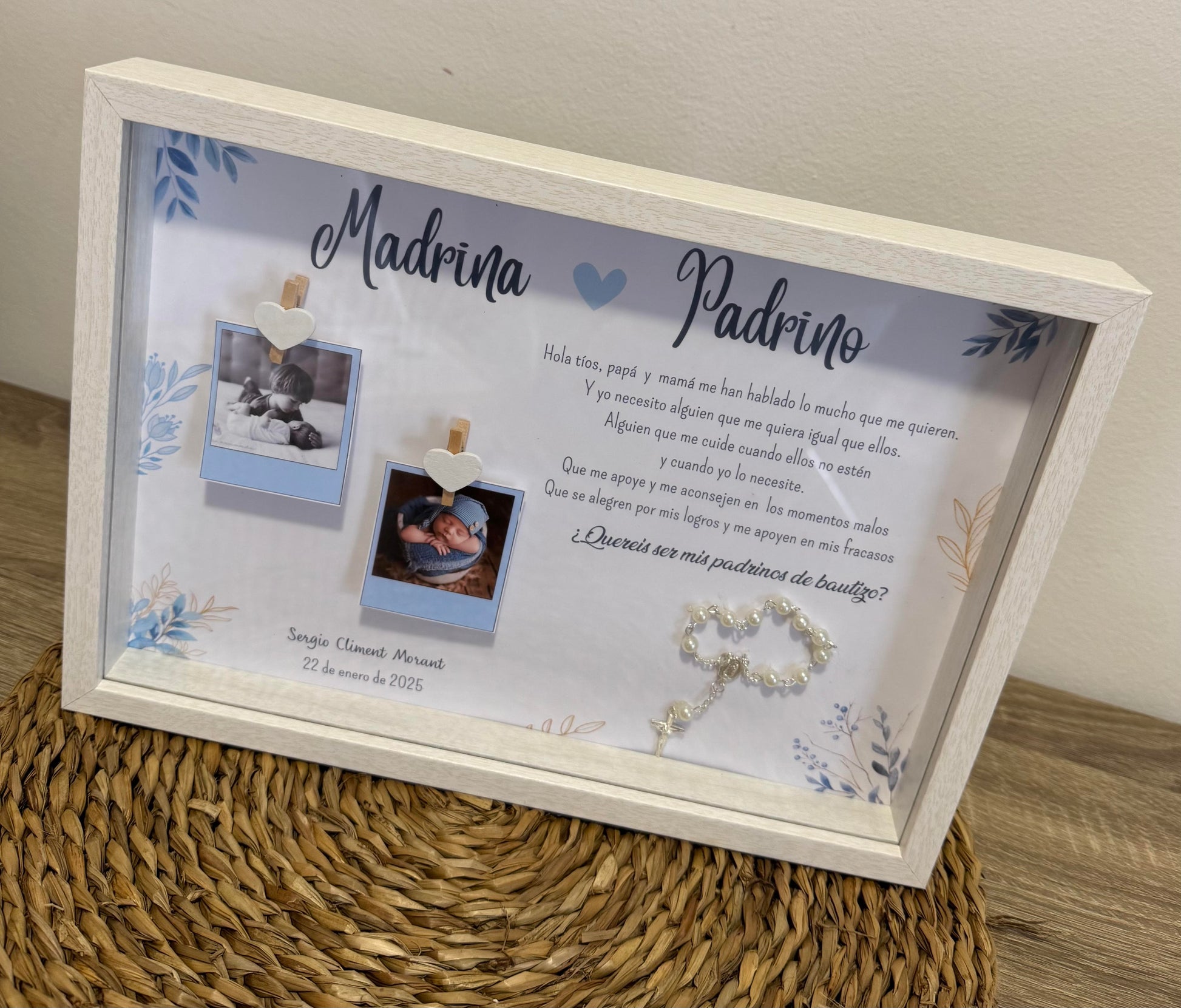 Sorprende a los padrinos de tu peque con este cuadro personalizado. Un regalo único para demostrarles el papel tan importante que tiene en la vida de tu hijo/a.