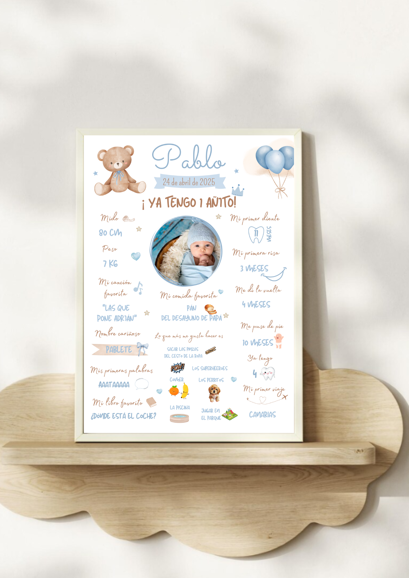 ♡ Lámina personalizada con su nombre, foto y datos de su primer año.