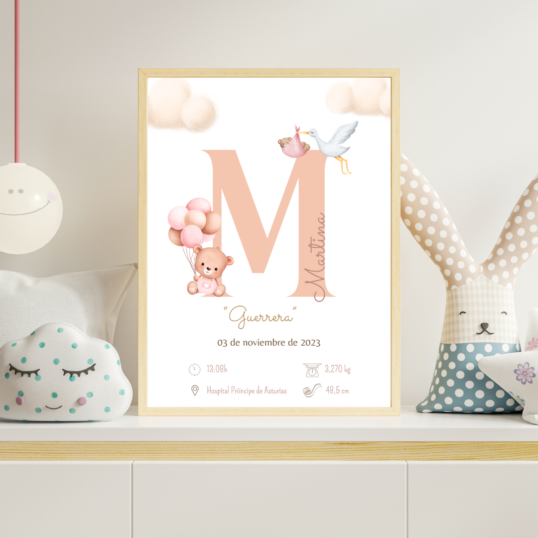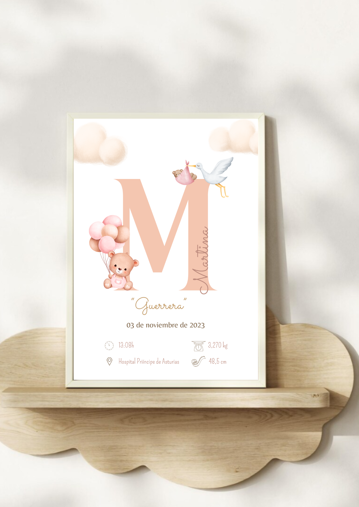 Decora su habitación con este natalicio personalizado con los datos de nacimiento de tu bebé.