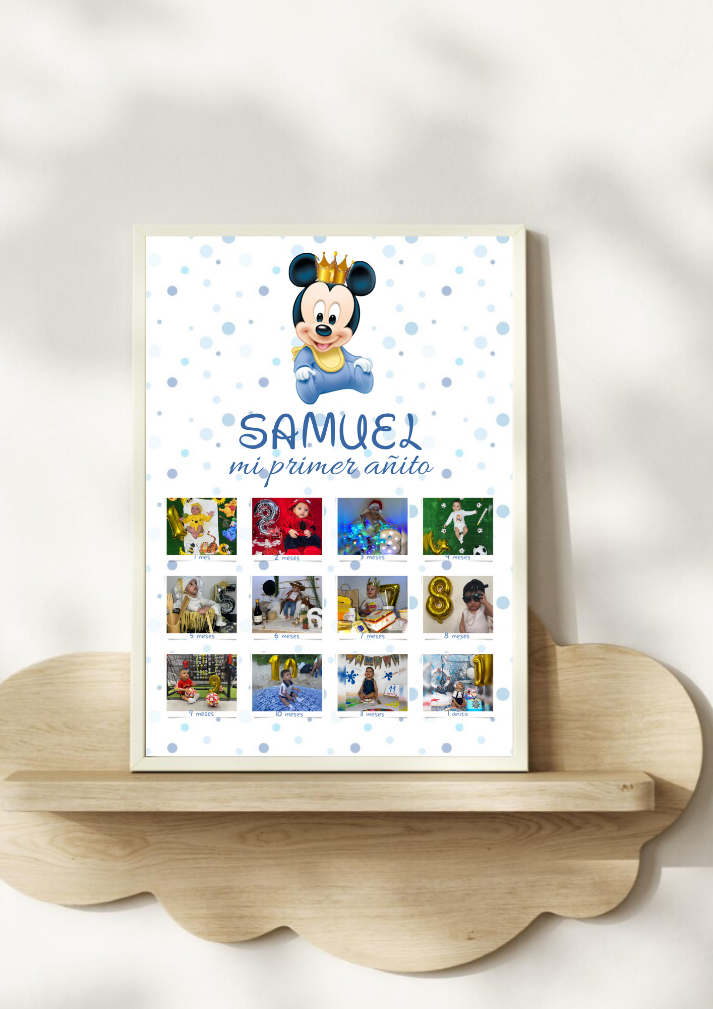♡ Lámina personalizada con su nombre y fecha de nacimiento y 12 fotos de sus primeros meses de vida