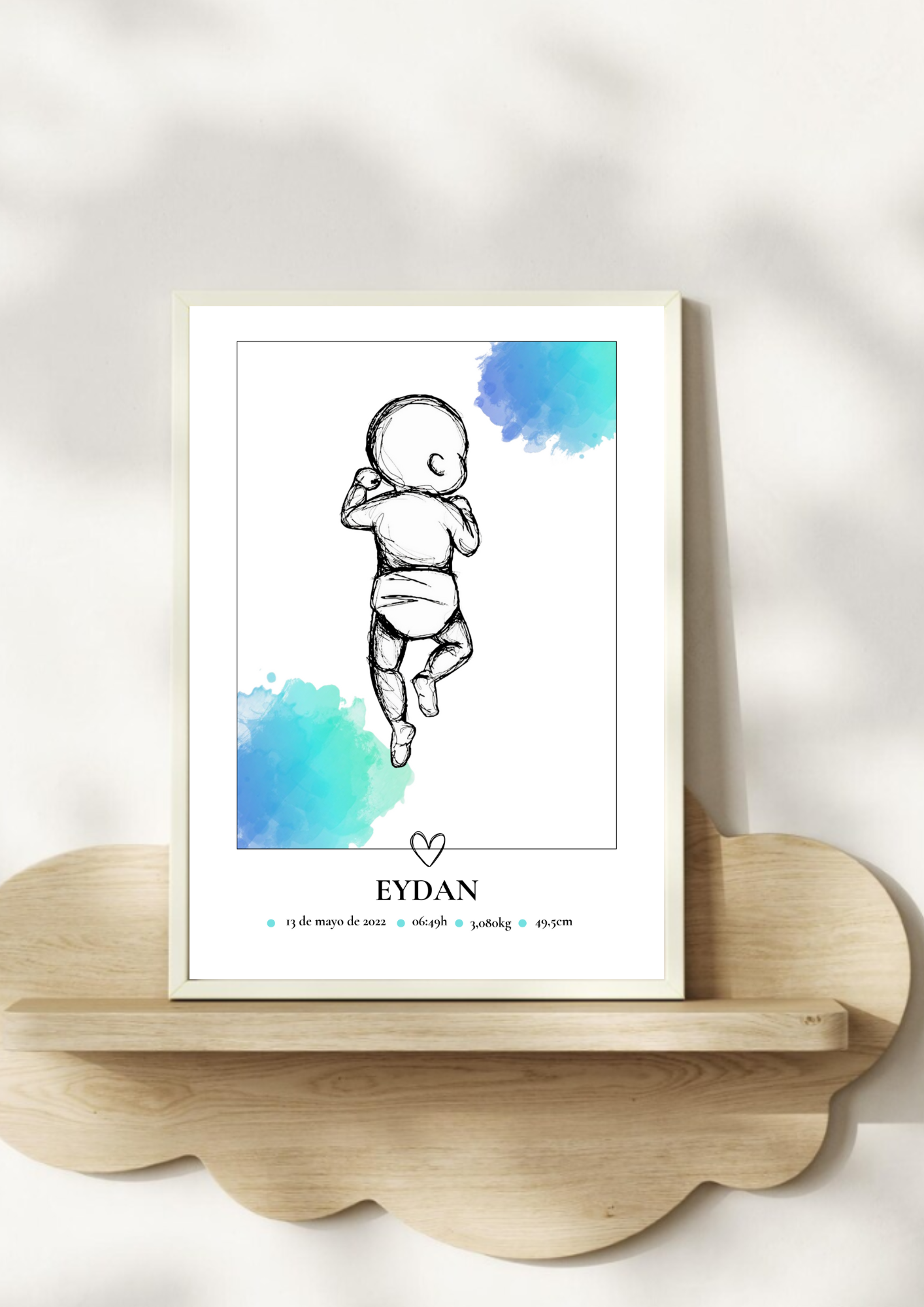 Celebra la llegada de tu bebé con esta bonita lámina personalizada de nacimiento, en la que podrás grabar los detalles del día en que nació tu bebé. Incluye su nombre, fecha de nacimiento, peso, medida, hora y lugar de nacimiento.