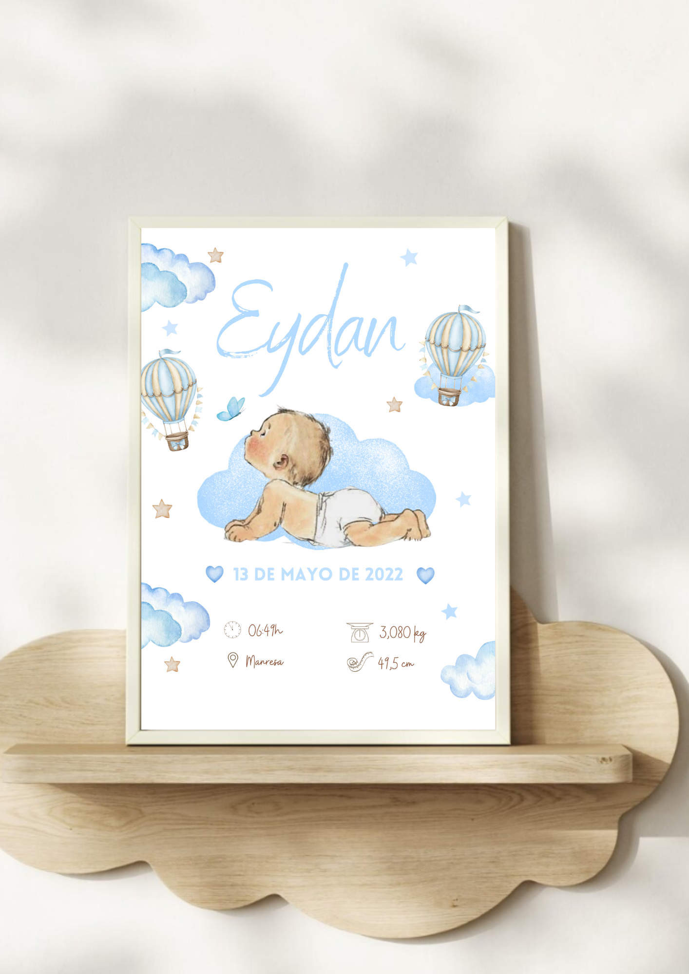 Celebra la llegada de tu bebé con esta bonita lámina personalizada de nacimiento, en la que podrás grabar los detalles del día en que nació tu bebé. Incluye su nombre, fecha de nacimiento, peso, medida, hora y lugar de nacimiento.