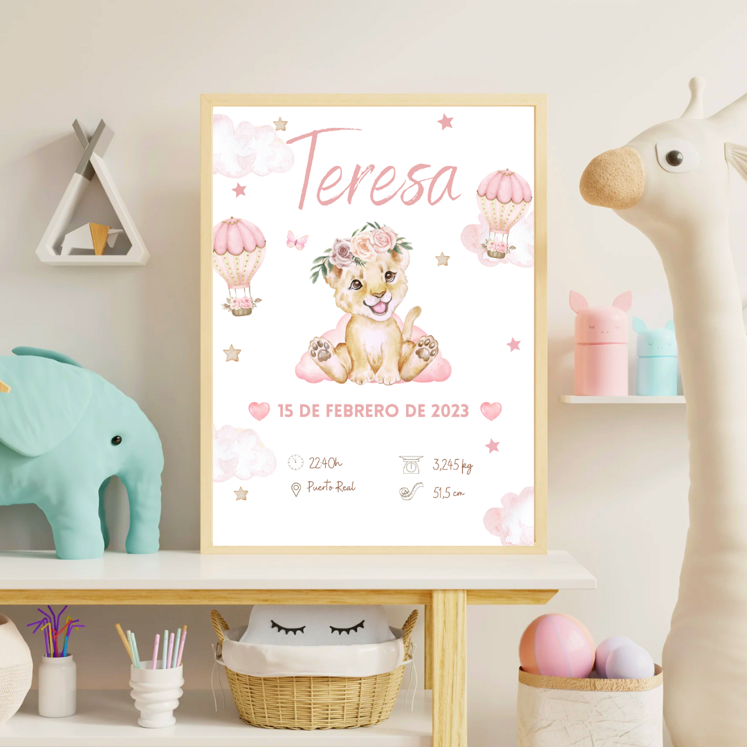 Decora su habitación con este natalicio personalizado con los datos de nacimiento de tu bebé.