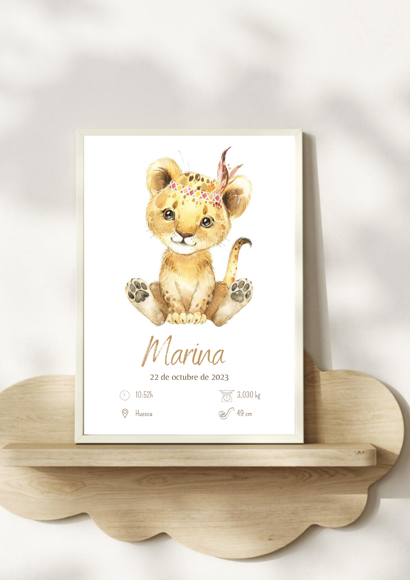 Lámina de nacimiento de bebé personalizada leoncita india