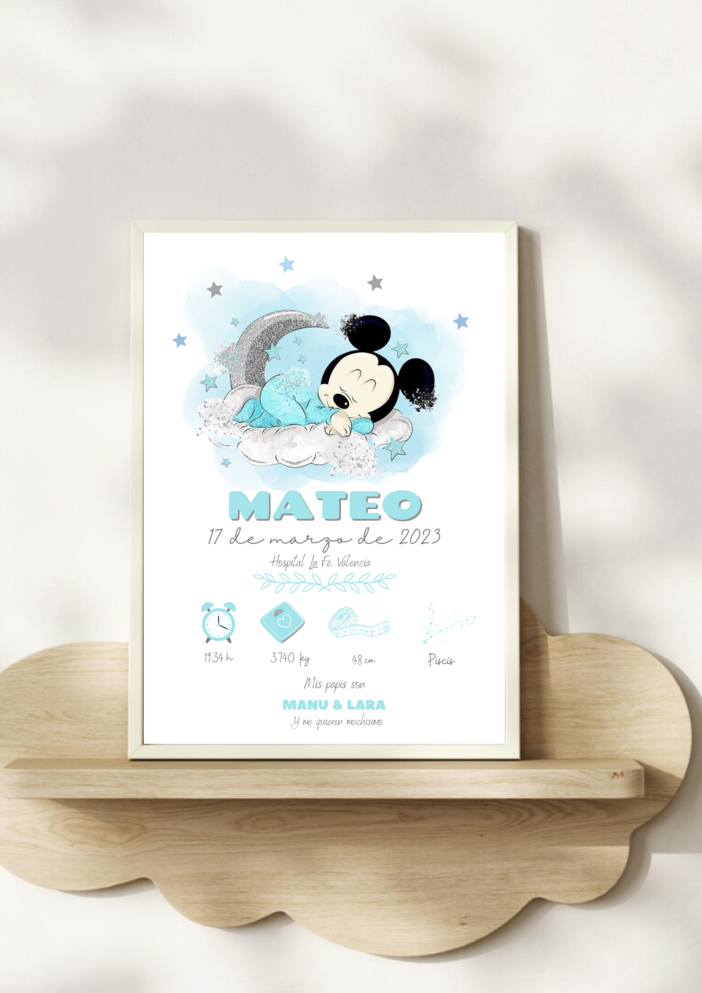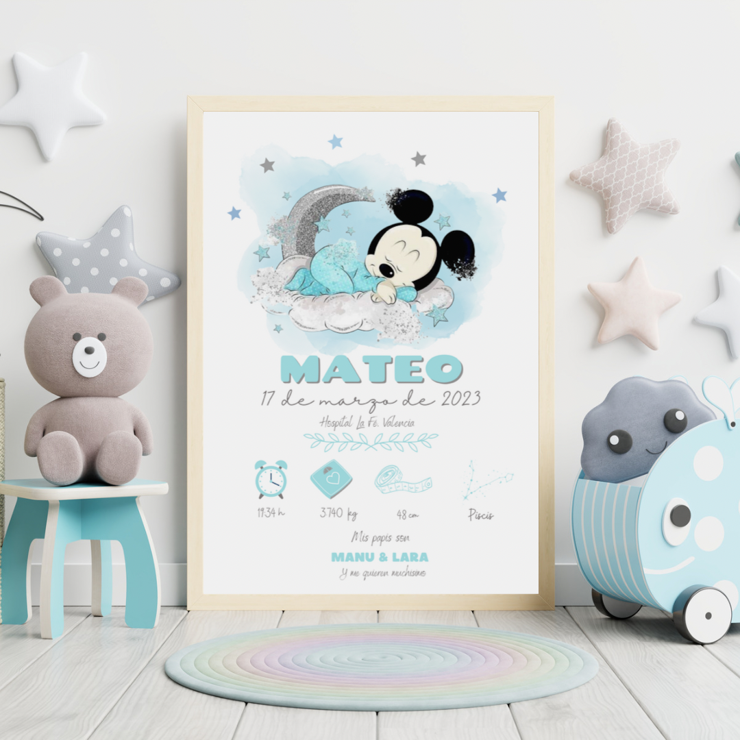 Decora su habitación con este natalicio personalizado con los datos de nacimiento de tu bebé.