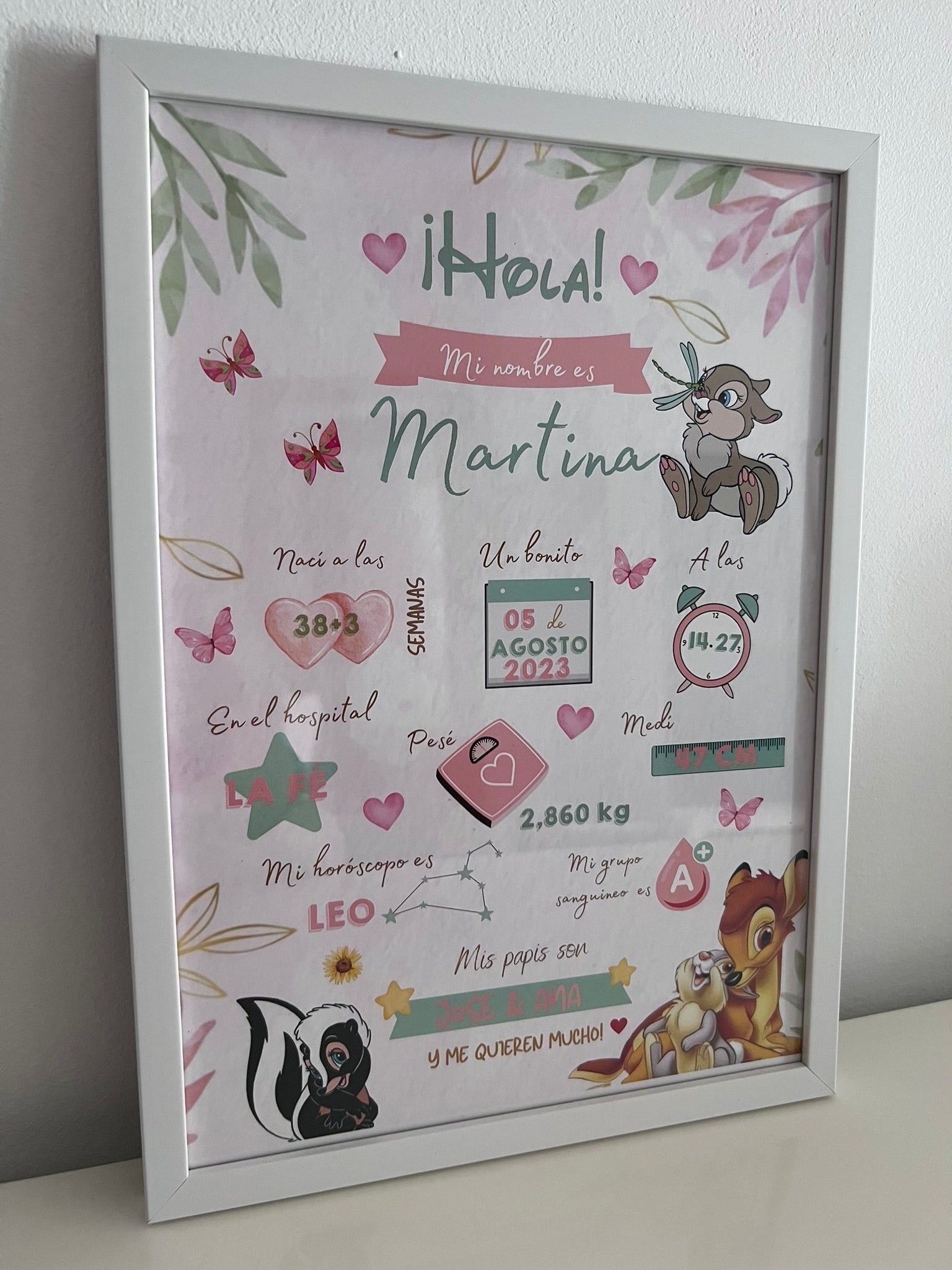 Lámina personalizada natalicio bebé "Bambi"