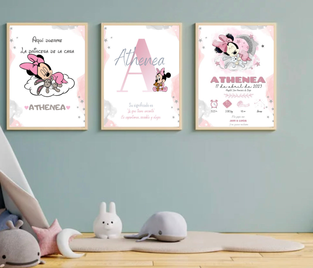 Pack 3 láminas (natalicio+ aquí duerme + huellas) Minnie 2
