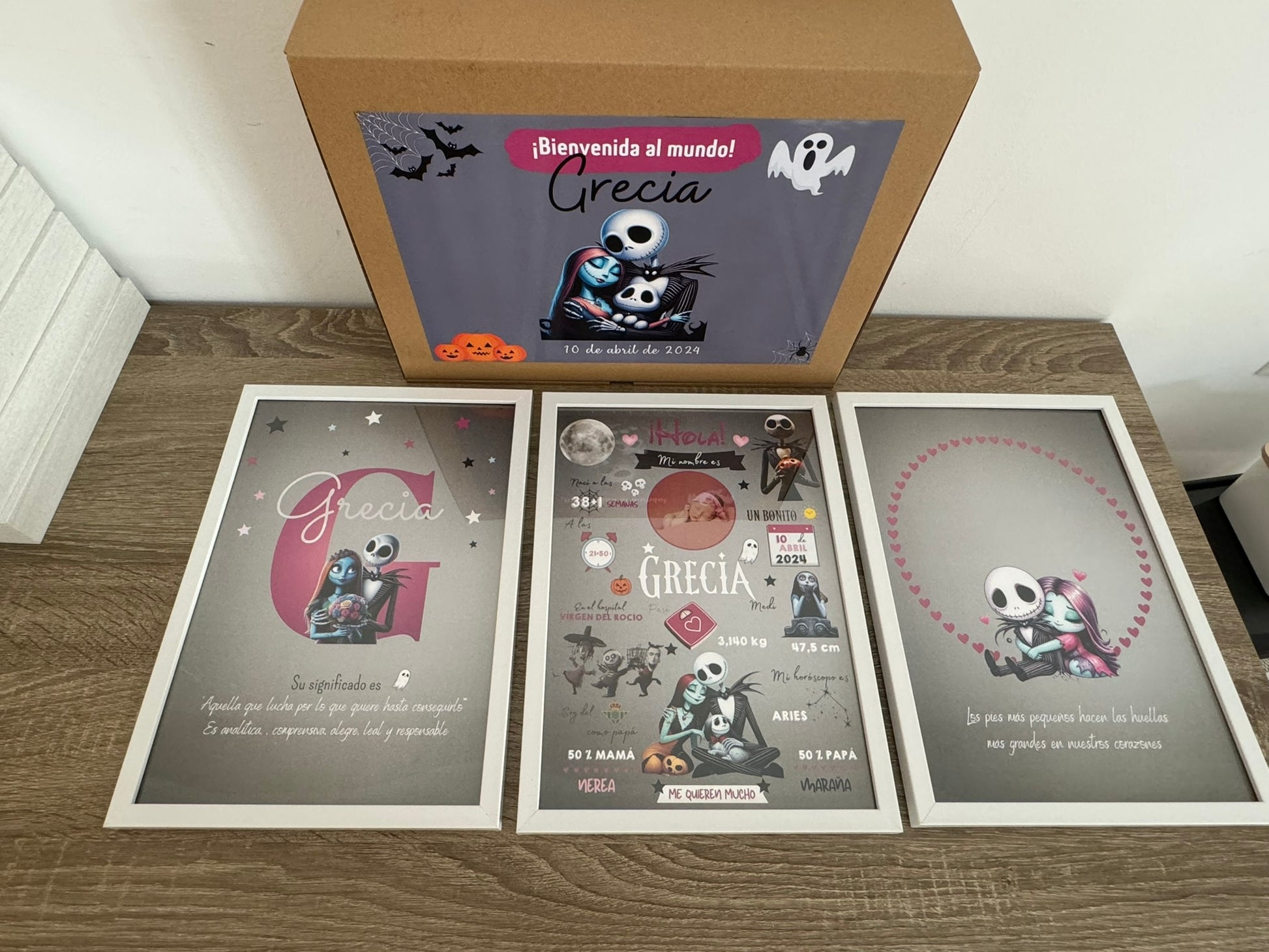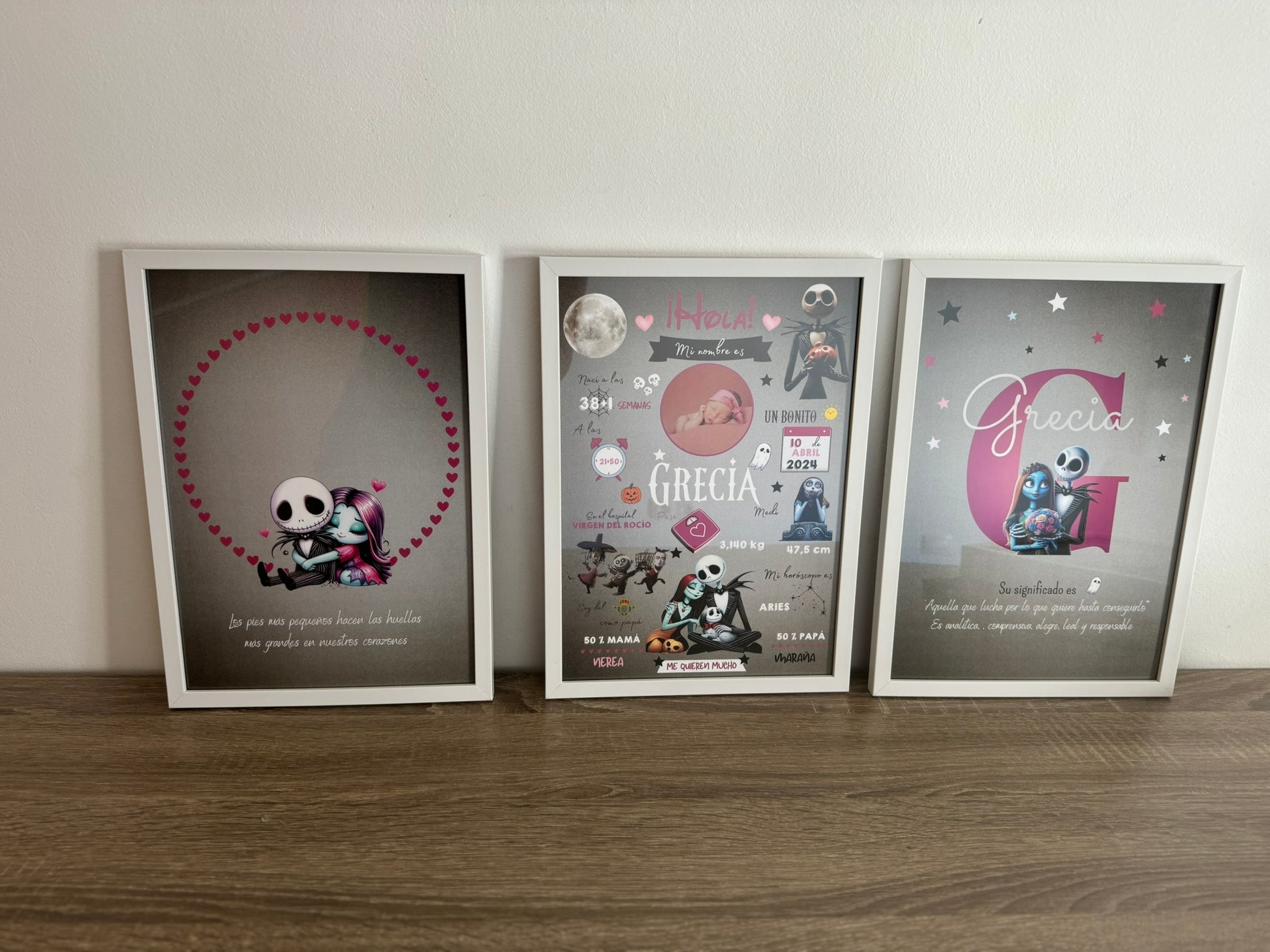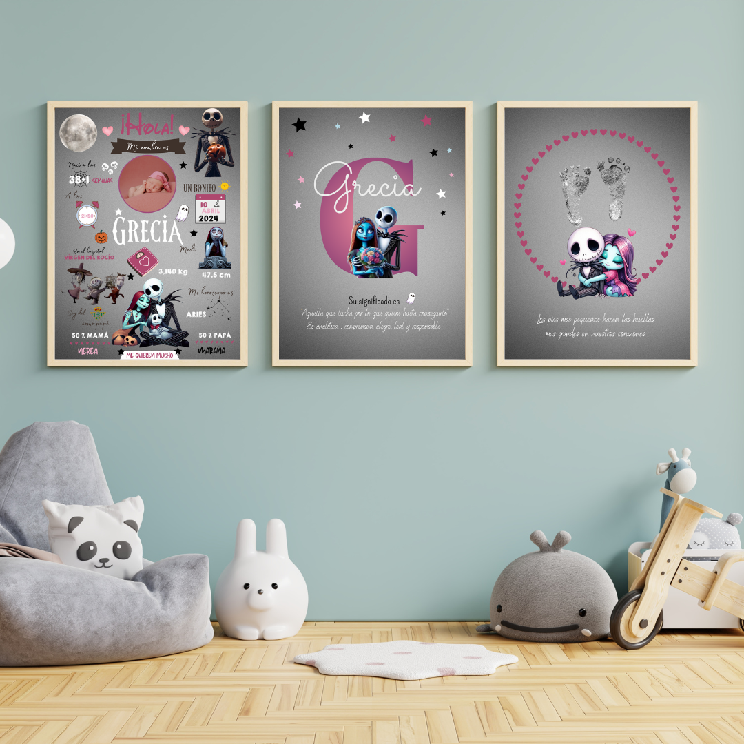 Pack 3 láminas (natalicio+ inicial significado+ huellas) Pesadilla antes de Navidad