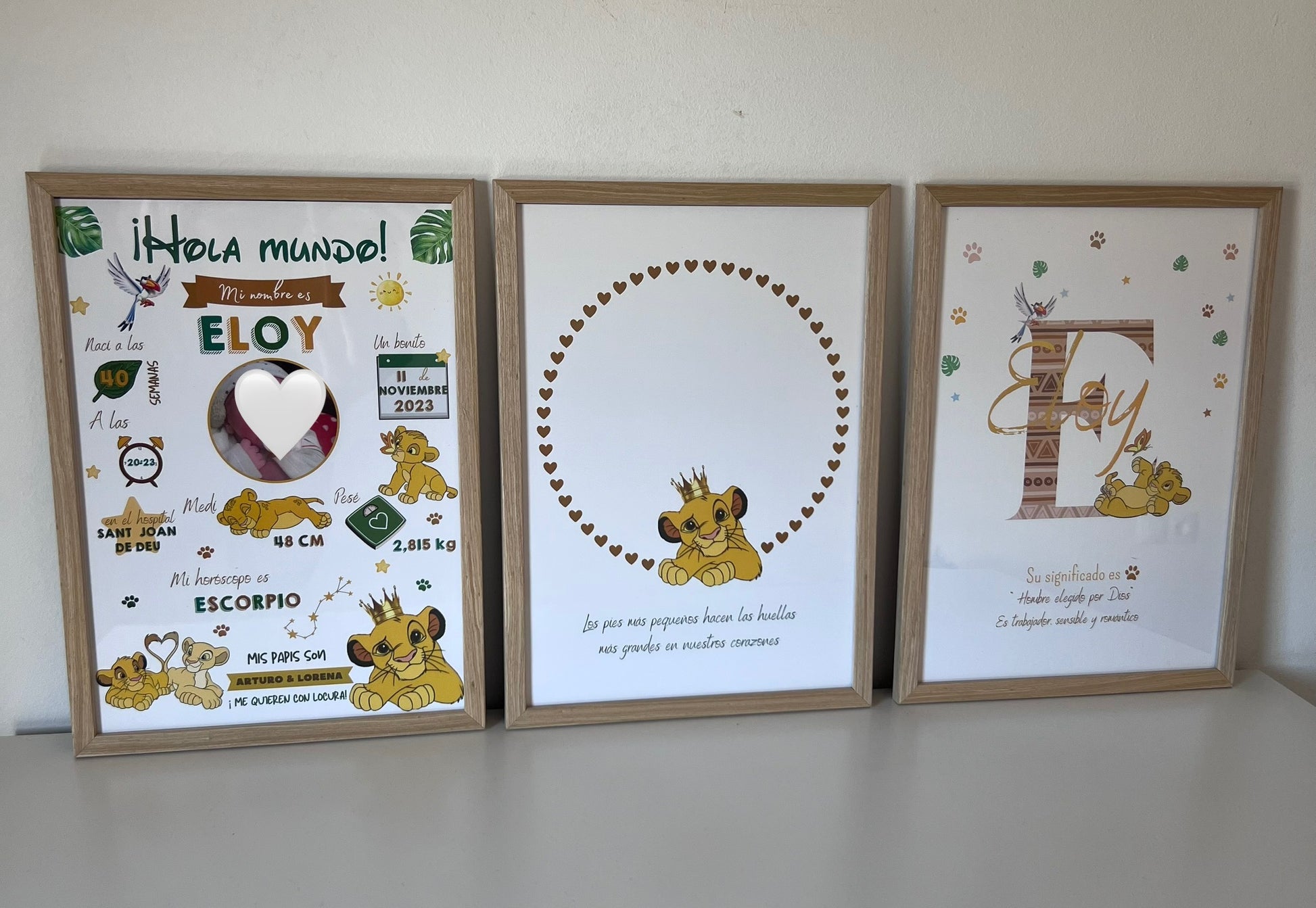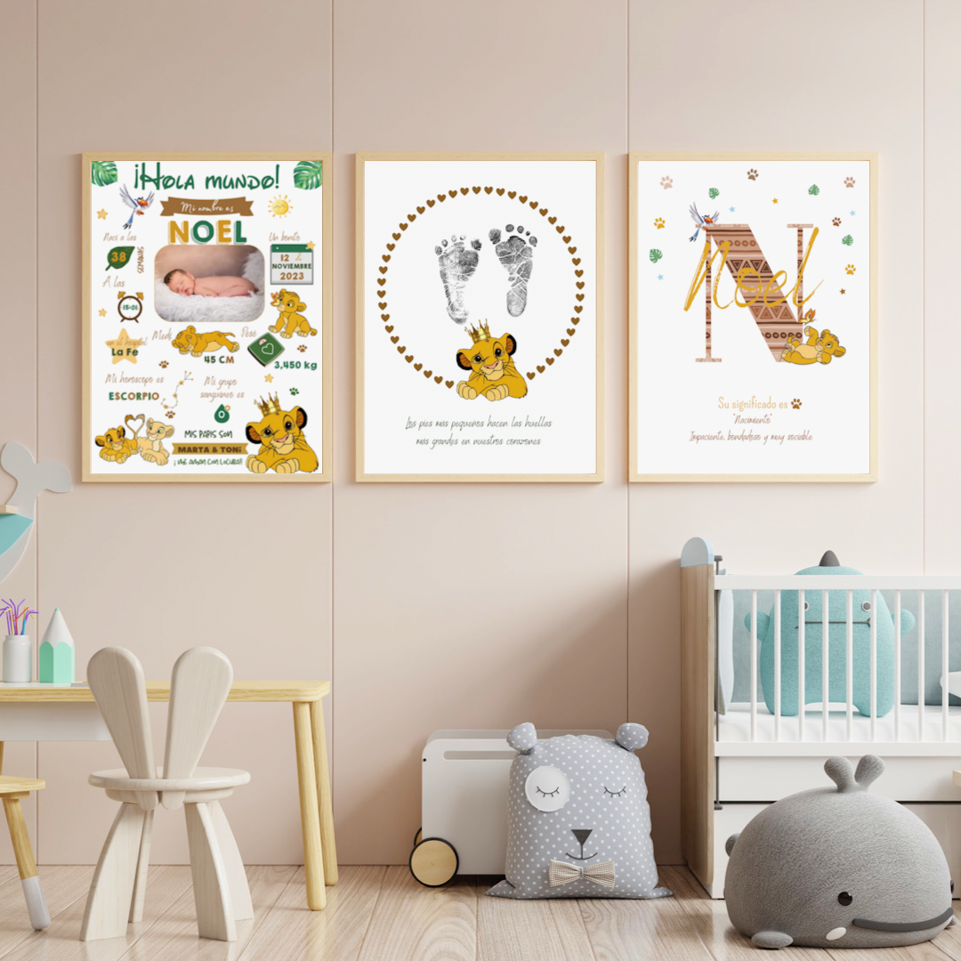 Pack 3 láminas (natalicio+ inicial significado+ huellas) Simba Rey León