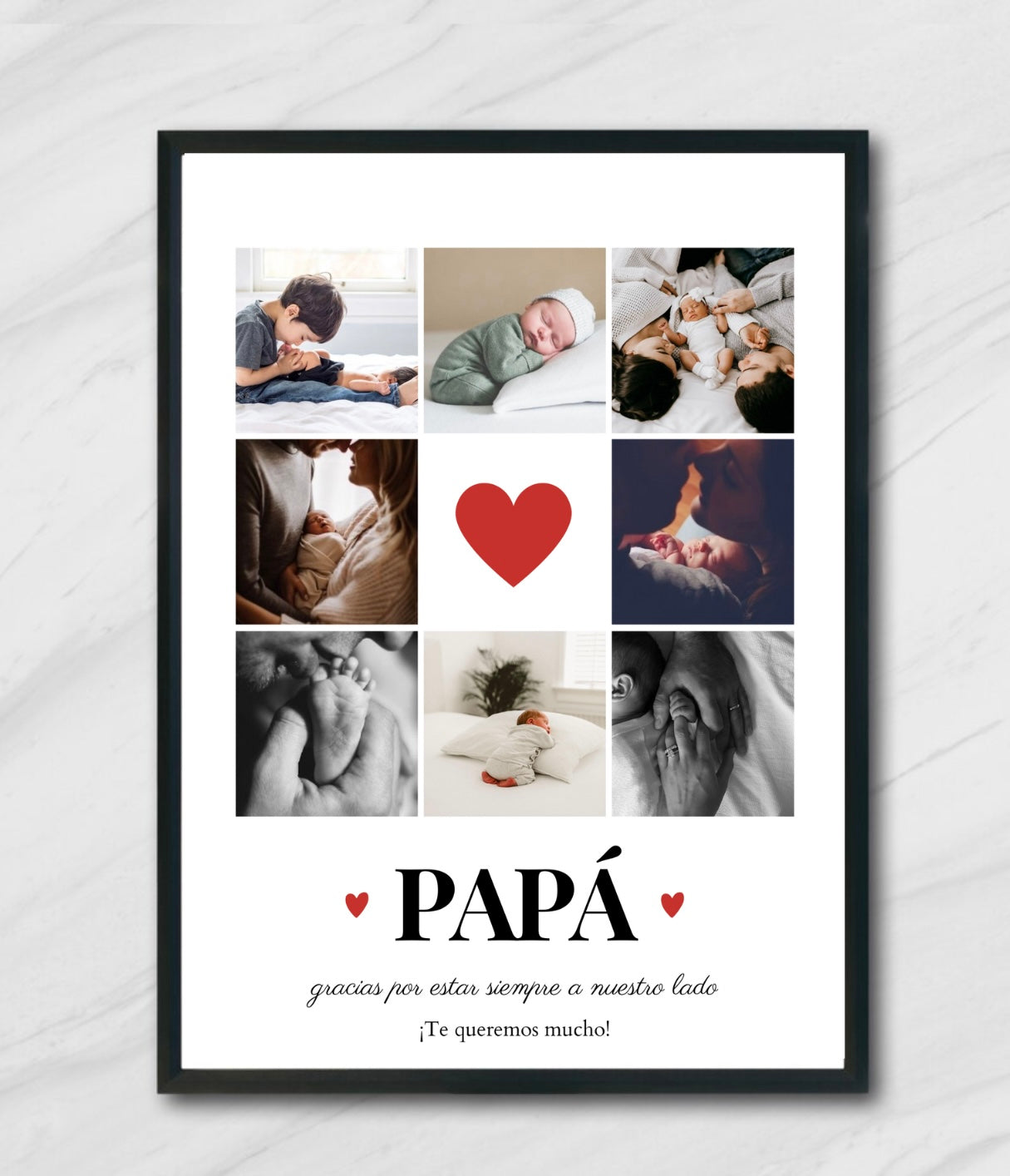 Sorprende a papá con un detalle único y emotivo. Esta lámina personalizada con fotos es un homenaje de los momentos más especiales entre papá y su hijo/a. Un regalo diferente que le encantará.