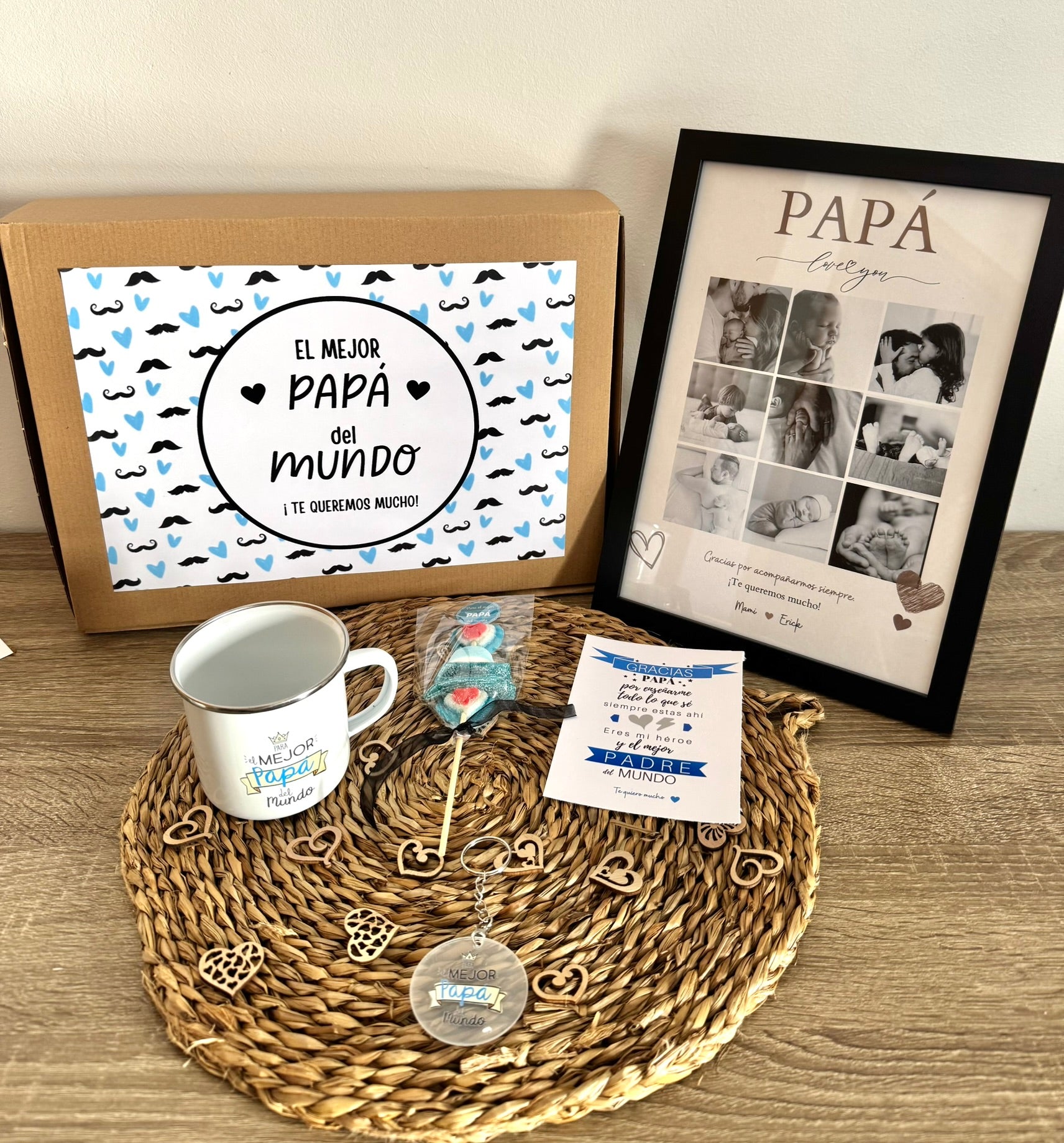Incluye lámina personaliza día del padre+ taza+llavero+tarjeta personalizada+brocheta chuches.