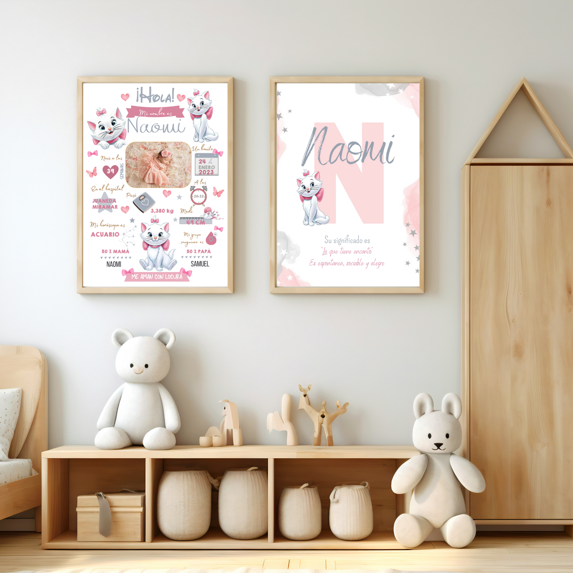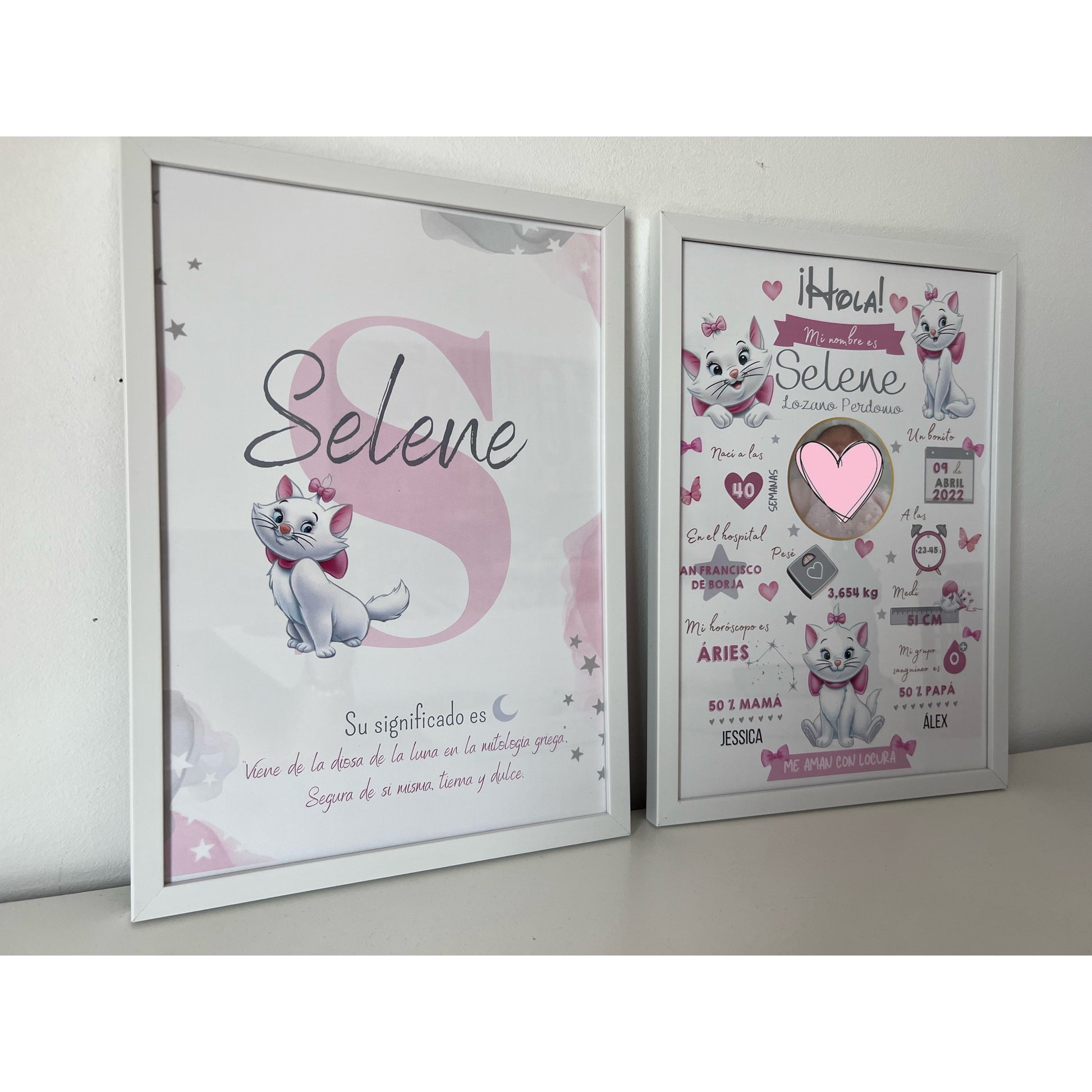 Pack 2 láminas (natalicio+ inicial significado) Aristogatos Gatita Marie